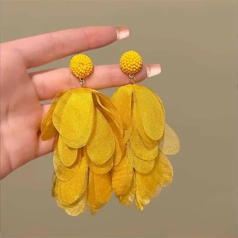 Yellow Flower Beaded Big Dangle Earrings